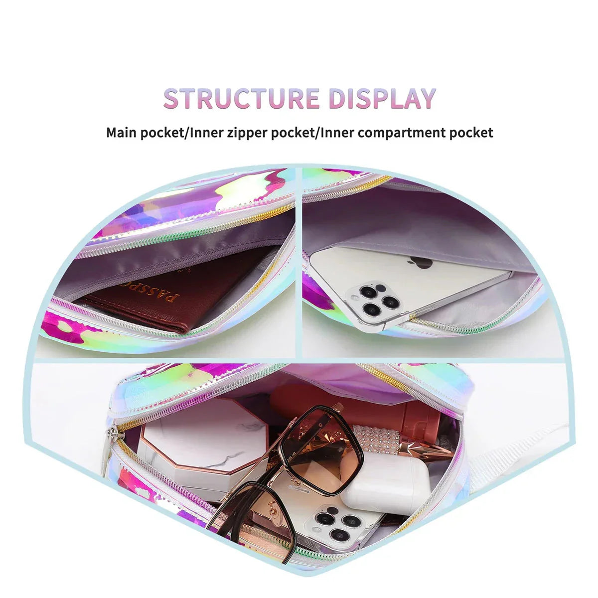 Die Piper holografische Muschel-Form Crossbody Hüfttasche ist ein auffälliges und verspieltes Accessoire, das jedem Outfit eine einzigartige Note verleiht. Mit ihrem holografischen Glanz und der Muschelform ist diese Tasche perfekt für Festivals, Partys oder einen lässigen Ausflug.