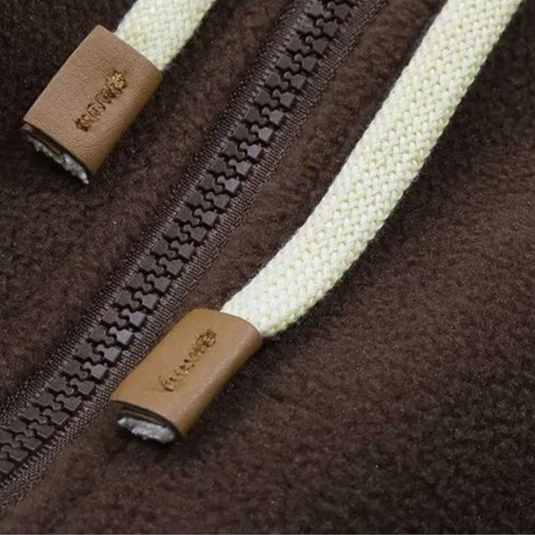 Genießen Sie Komfort und Stil mit der gestreiften Strickjacke NIKKI. Mit einem gemütlichen Fleece-Futter und einer Kapuze kombiniert dieses Modell lässige Eleganz mit alltäglicher Praktikabilität. Die Mischung aus Creme- und Brauntönen verleiht ihm einen schicken, vielseitigen Look.