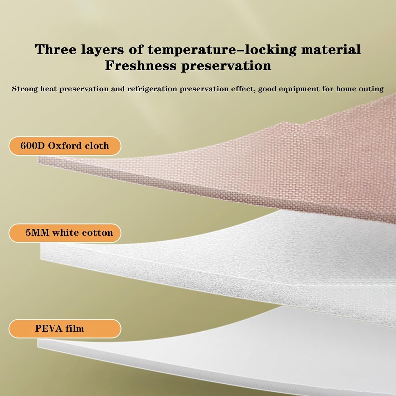 Danke an sein Dreischichtisolierung , einschließlich dicker Schaumstoff und einer inneren Peva -Futter, bleibt Ihr Essen bis zu 12 Stunden heiß oder kalt. Das ist Zuverlässige Temperaturregelung - Egal wie lange die Route oder wie weit der Park ist.