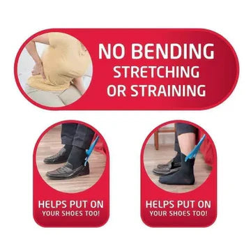 Unsere Anziehhilfe ist für eine Vielzahl von Strumpfwaren geeignet und eignet sich für Kompressionsstrümpfe, elegante Socken, Sportsocken und lässige Söckchen. Die Halterung dient auch als Schuhlöffel und führt die Fersen in die Schuhe, ohne das Leder zu verbiegen oder zu beschädigen. Damit ist sie ein Mehrzweckwerkzeug für das tägliche Anziehen.