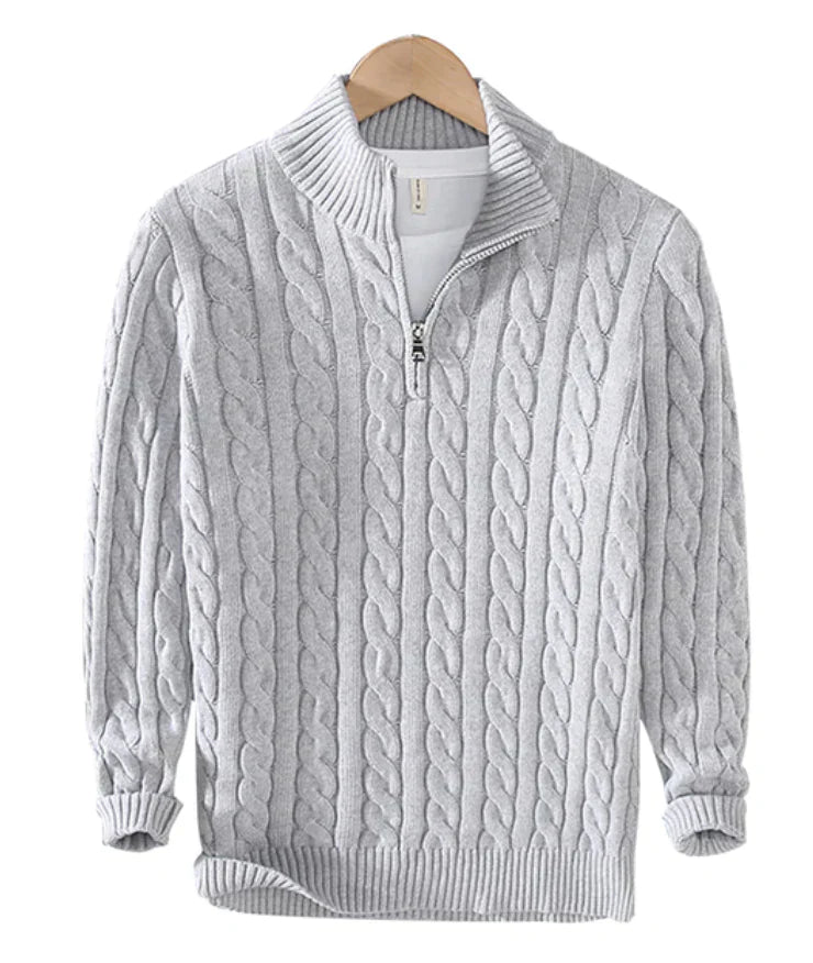 Matthias | Modischer Strickpullover mit Zopfmuster und Reißverschluss