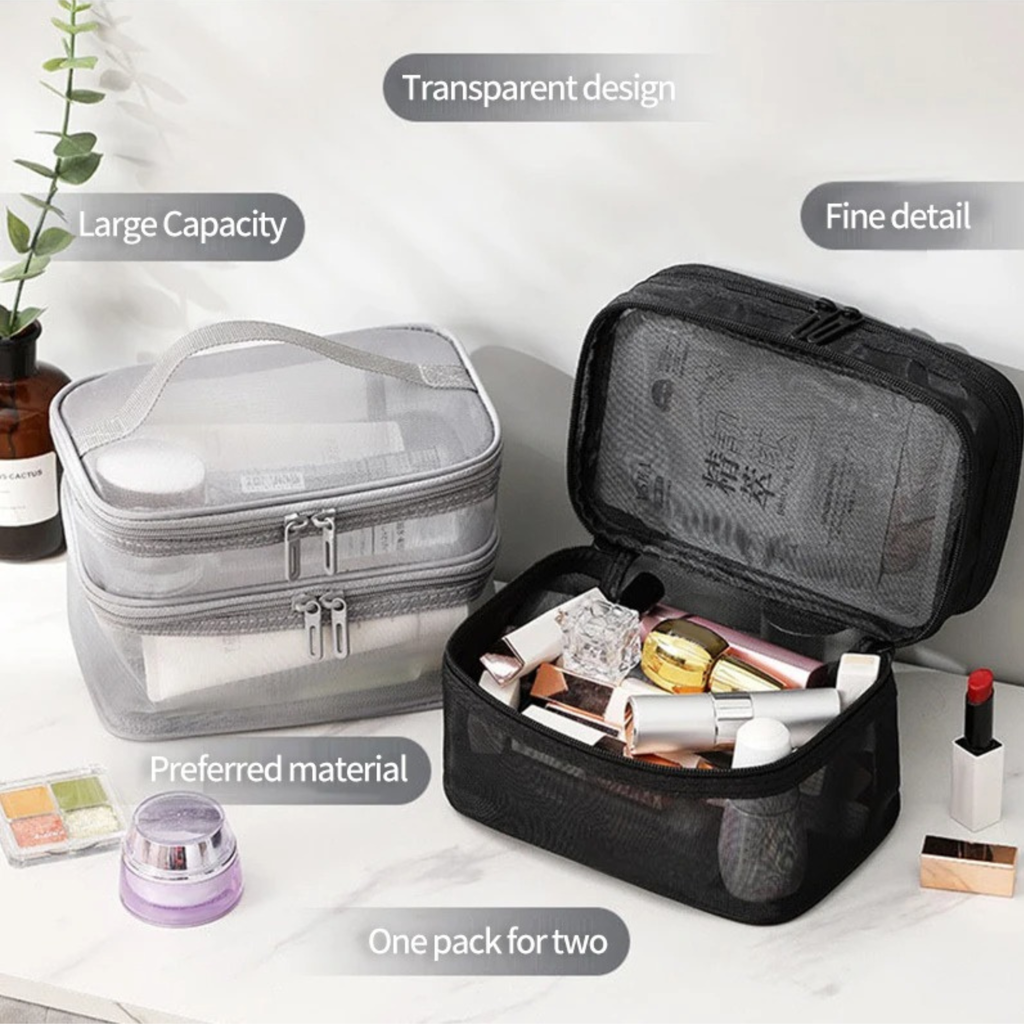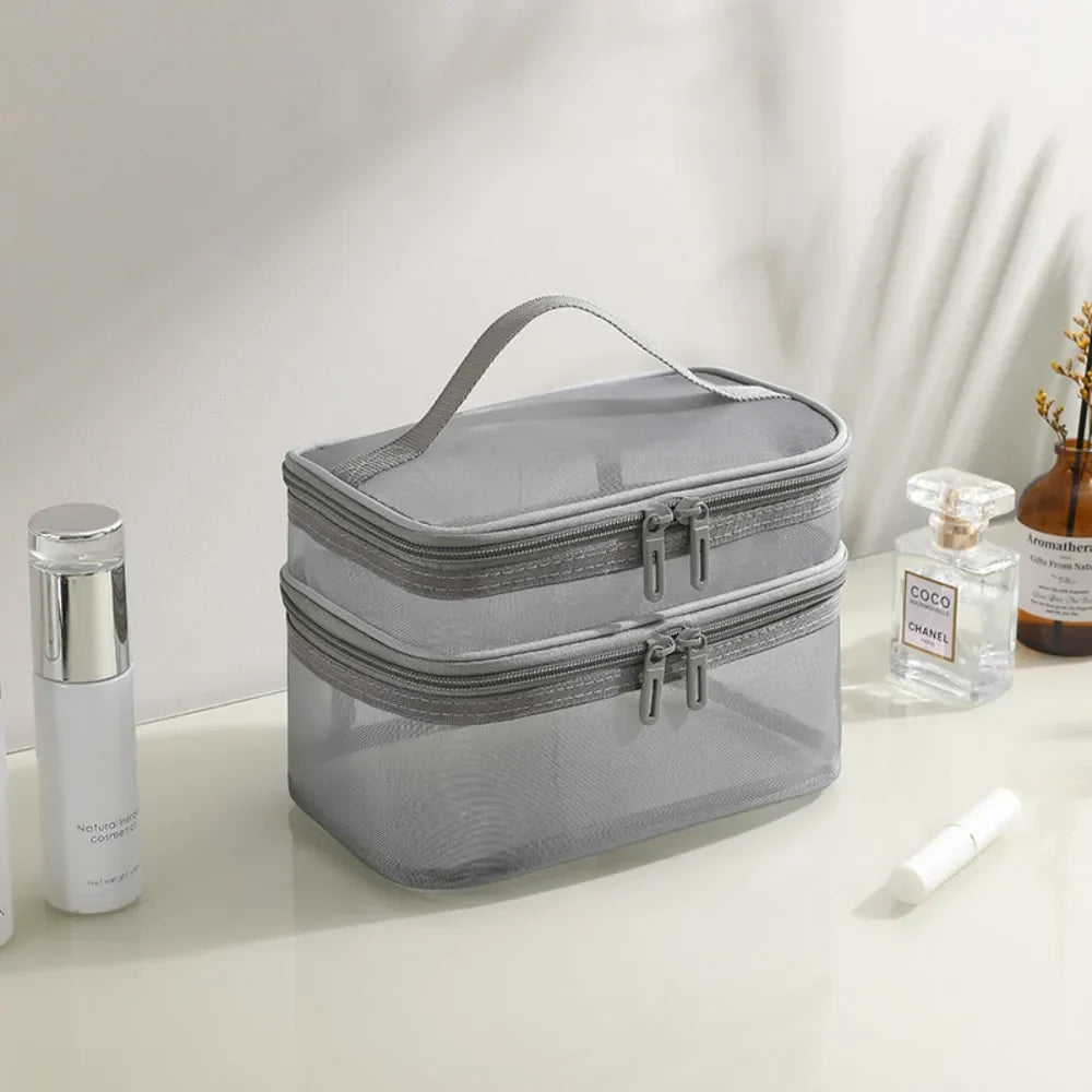 Die Arelynn Doppel-Layer Tasche wurde entwickelt, um ultimativen Überblick in einem kompakten, reisefreundlichen Format zu bieten. Ihre zwei-schichtige Struktur ermöglicht eine einfache Trennung der Gegenstände, wodurch alles ordentlich organisiert und leicht zugänglich bleibt. Perfekt für Kosmetika und Toilettenartikel, sorgt diese Tasche dafür, dass deine Essentials während des Reisens an ihrem Platz bleiben.
