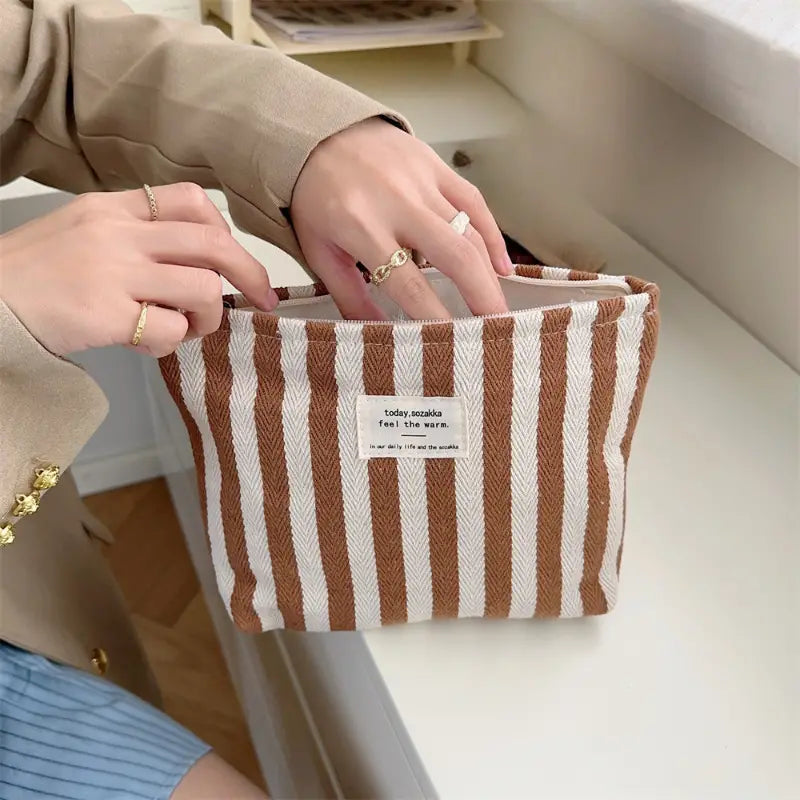 Olive | Gestreifter Kosmetik-Make-up Reisebeutel