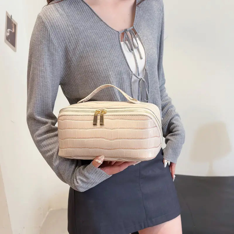 Das Paloma Kosmetiktäschchen ist stilvoll und geräumig, entworfen, um all Ihre Beauty-Essentials in einem schicken Organizer unterzubringen. Seine große Kapazität macht es perfekt zum Aufbewahren von Make-up, Hautpflege und Zubehör und sorgt dafür, dass alles ordentlich angeordnet und leicht zugänglich bleibt.