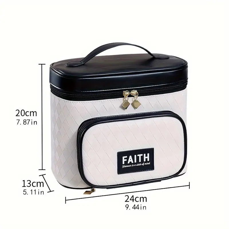 Der Rosalina Stylish & Practical Well-Organized Travel Beauty Organizer wurde entwickelt, um Ihre Schönheitsessentials ordentlich zu verstauen und unterwegs leicht zugänglich zu machen. Seine kompakten, aber geräumigen Fächer ermöglichen ein organisiertes Packen und machen ihn perfekt für kurze und lange Reisen.