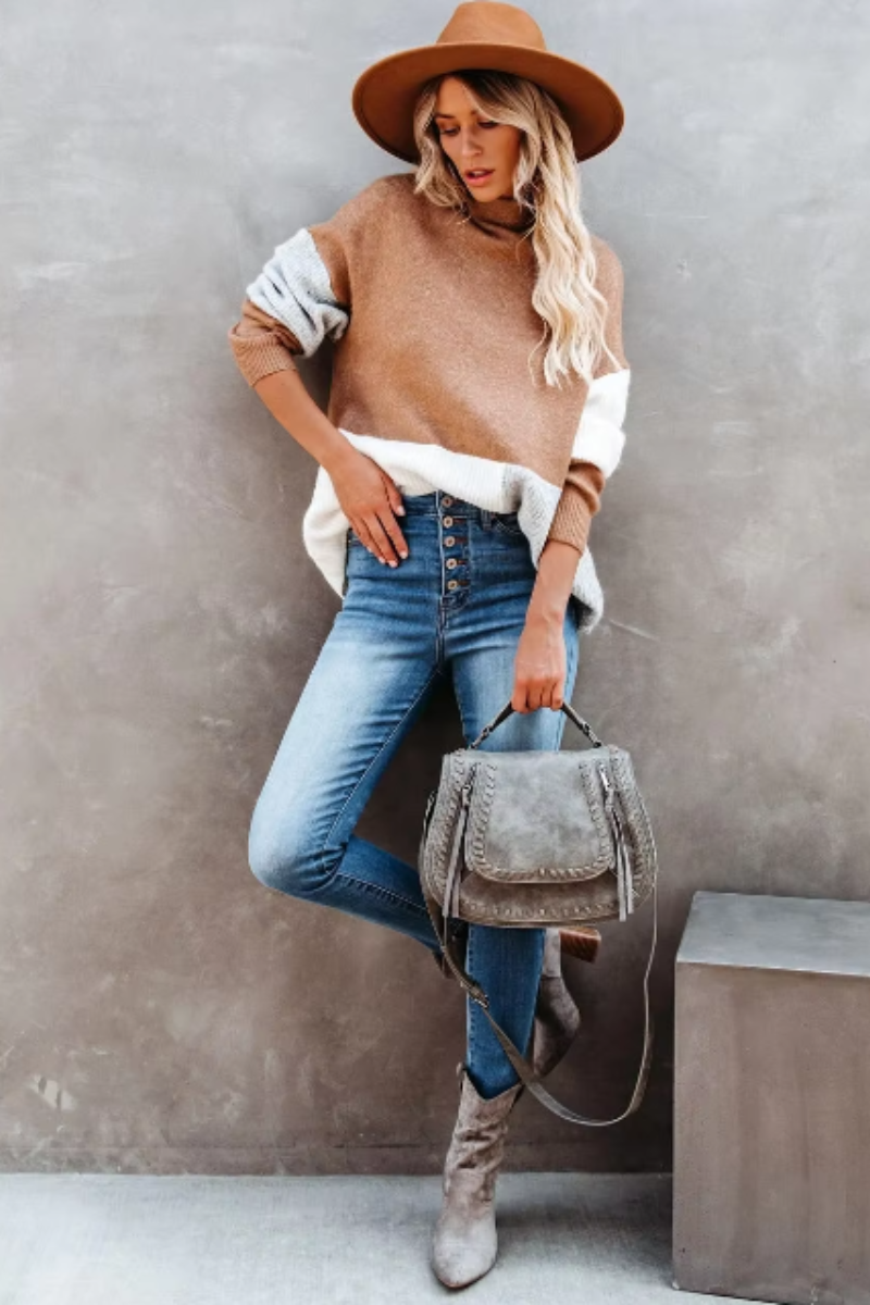 Der Donna Farbblock-Pullover bietet eine perfekte Kombination aus Wärme und Stil. Das weiche Material sorgt für angenehmen Tragekomfort, während das trendige Farbblock-Design jedes Outfit aufwertet.