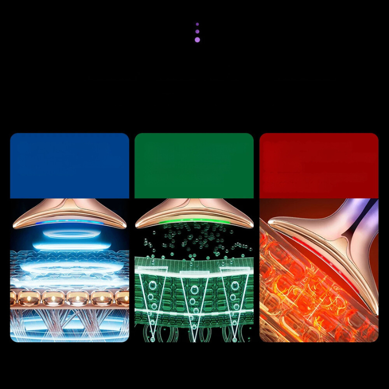 - Drei-Farben-Phototherapie: Blaues Licht beruhigt die Haut, grünes Licht verbessert die Elastizität, und rotes Licht stimuliert die Kollagenproduktion, um die Jugendlichkeit der Haut wiederherzustellen.
