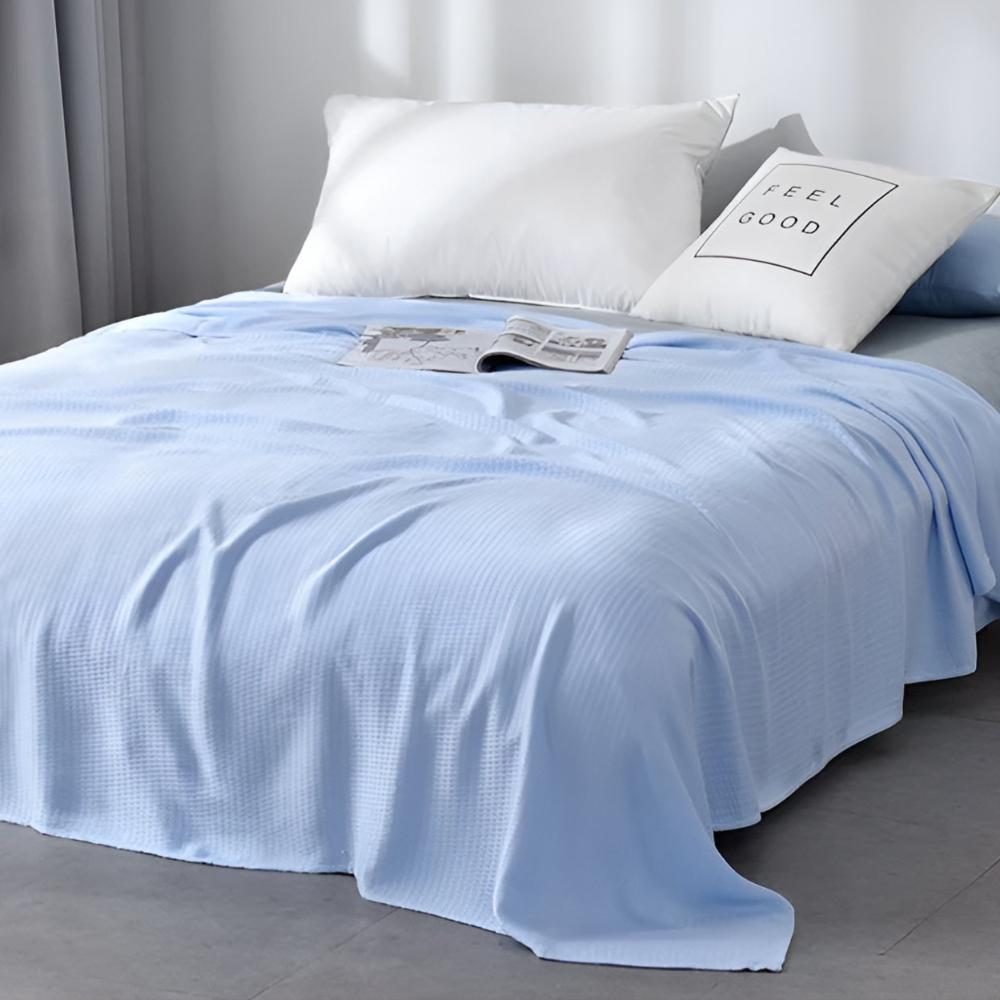 Die Sommerbrise -Kühldecke ist für heiße Schläfer gefertigt, um die Körperwärme aufzunehmen und einen erfrischenden, kühlen Schlaf zu bieten. Leicht und dünn ist es perfekt für Sommerkomfort und vielseitig genug, um das ganze Jahr über als Bettabdeckung, Couch-Wurf oder Reisedecke zu verwenden.