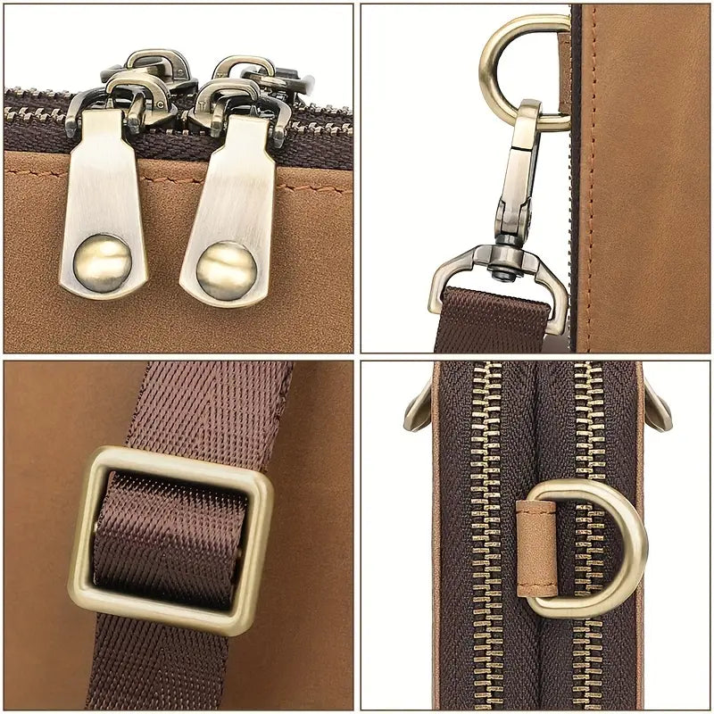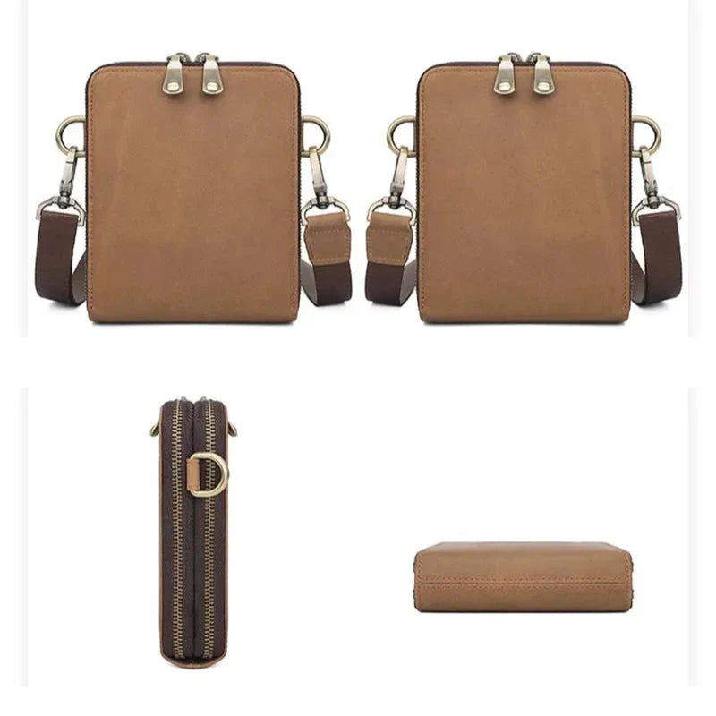 Die Elias Retro Schultertasche aus Rindsleder ist eine stilvolle und robuste Tasche, die vintage Charme ausstrahlt. Hergestellt aus hochwertigem Rindsleder, bietet diese Tasche sowohl Langlebigkeit als auch Luxus. Das geräumige Innenleben bietet ausreichend Platz für Ihre täglichen Essentials, von Ihrem Handy bis zu Ihrer Geldbörse und mehr.