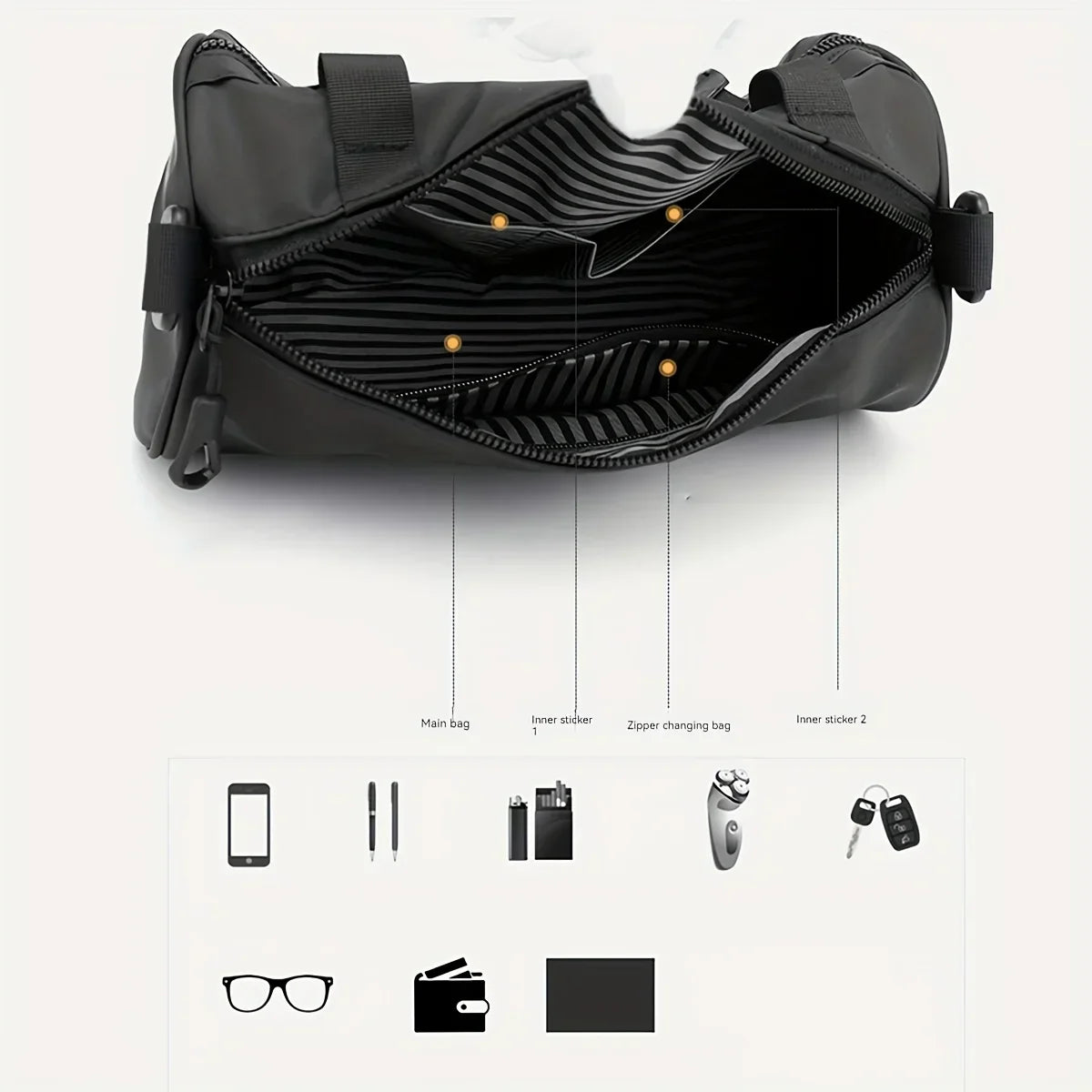 Timo | Herren Wasserdichte Crossbody Sling Reisetasche ist der ideale Begleiter für aktive Männer, die sowohl Stil als auch Funktionalität suchen. Diese Tasche ist aus wasserdichtem Material hergestellt, wodurch deine Sachen selbst bei regnerischem Wetter sicher bleiben. Die kompakten Abmessungen machen sie zur perfekten Wahl für tägliche Reisen oder abenteuerliche Ausflüge.