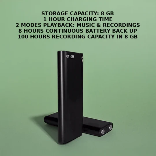 Ein kompakter, sprachaktivierter Rekorder, der sowohl diskret als auch effizient ist.